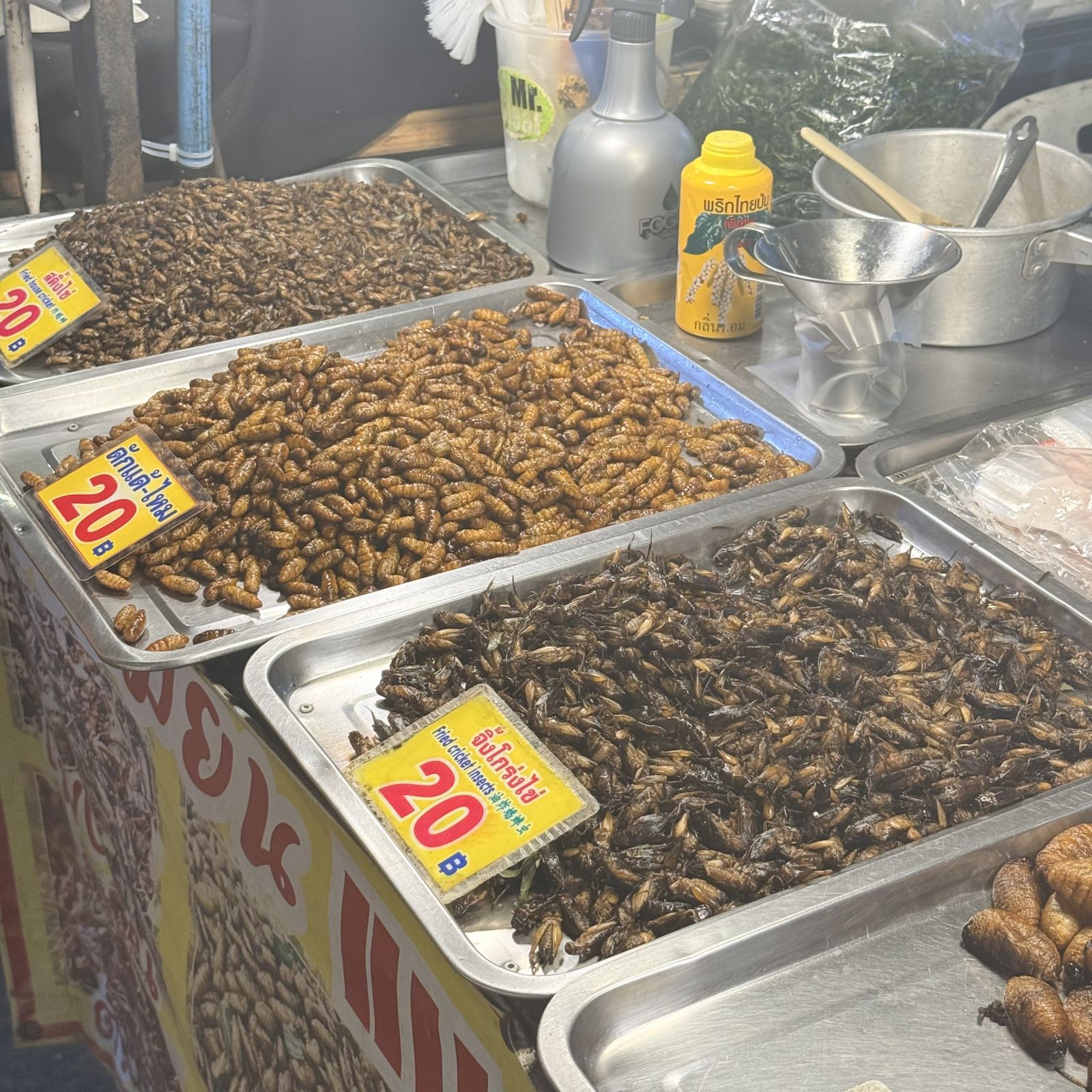 민초 아이스크림도 먹고, 벌레 튀김들도 보고,,, 야시장에서 유명한 로띠도 먹어봤어요!!